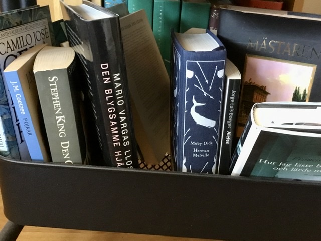 Men dåså, kan man ju tänka. Risken i att beställa lite böcker framöver och gå och hämta dem på beställningshyllan på biblioteket den är nog inte så stor. Och ändå gnager det i mig. Mitt olästa bokbestånd krymper! Det hjälper inte att jag inte bara har böckerna på bokvagnen att läsa. Det vimlar av hyllvärmare i våra bokhyllor. Tänk bara på alla böcker jag visar i Hett i hyllan på torsdagar.