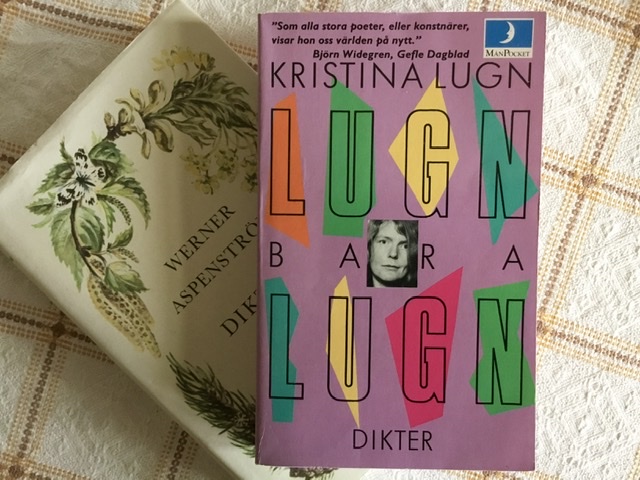 Det är hög tid att läsa Kristina Lugn igen, det är så länge sedan. Den här pocketen har stått i hyllan många år utan att jag tagit fram den, men nu ska det bli ändring. Jag har tyckt mycket om hennes dikter tidigare och jag räknar med att jag får en hel del fina poesistunder med den här boken. Så från Werner Aspenström till Kristina lugn alltså.