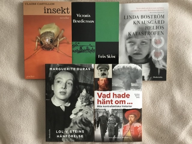 Insekt av Claire Castillon föll jag för direkt, antagligen på grund av att vi hade insekter som tema i Tisdagstrion härom veckan. Från Skåne av Victoria Benediktsson tyckte jag verkade intressant och Helioskatastrofen av Linda Boström Knausgård har jag länge velat läsa eftersom jag har läst både Välkommen till Amerika och Oktoberbarn med behållning.