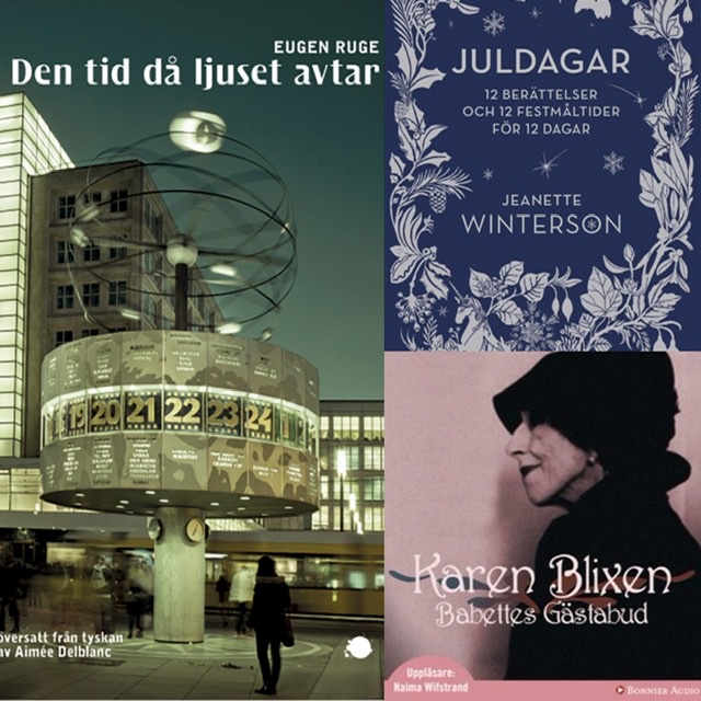 Jag har nyligen läst Den tid då ljuset avtar av Eugen Ruge och jag tänkte att det kunde passa att ha med en bok där maten inte spelar huvudrollen men där det finns något parti som handlar om matlagning. I Den tid då ljuset avtar handlar om en familj i flera generationer i DDR, och i två kapitel är det julafton, men i olika tider. Den första julaftonen äger rum medan DDR fortfarande fanns och den andra efter att muren har fallit. Irina tillreder gåsen med fyllning, grönkålen, rödkålen, klimp samt julkakan. Det kommer ett inlägg om den här boken snart. Titeln är en länk till mitt hettihyllaninlägg.