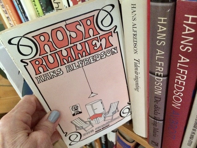 Ja nu är jag tillbaka på bokstaven A i bokhyllan och där står alltså böcker av Hans Alfredson. I Rosa Rummet skojar han med August Strindbergs Röda rummet. Den senare har jag läst, fast det var länge sedan, men inte denna. När jag läser de första raderna i Rosa Rummet ser jag att en Gary Falk åker upp till Mosebacke för att titta på utsikten. Men den kan han visst inte se därifrån. Så Hans Alfredson skriver alltså om Gary Falk medan Strindberg skrev om Arvid Falk. Jag tror att den här boken kan vara ganska rolig.