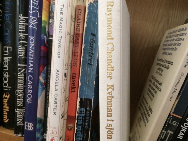 Du har riktiga deckarklassiker i hyllan 🙂 Jag har läst ett antal Raymond Chandler, men det var liksom flera decennier sedan så jag kan inte påstå att jag minns dem.