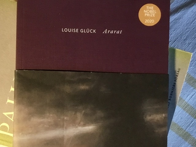 Ingen ska tro att jag har läst hela Andningsvändning av Paul Celan, men jag har kommit till avdelning III och nu pausar jag där och läser lite Louise Glück istället. Ararat tillhör de böcker som jag köpte i och med att hon tilldelades Nobelpriset. Den har stått ganska länge på bokvagnen och väntat nu.