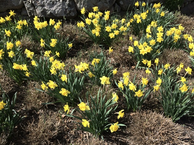 Tro nu inte att påskliljorna blommar så här vackert just nu utmed min promenadväg. Bilden är från förra året och tagen i maj. Men påskliljor hör påsken till ändå. För mig är gult just påskens färg även om jag vet att många förknippar påsken med pastellfärger – ljusblått, ljusgrönt, rosa och pastellgult.