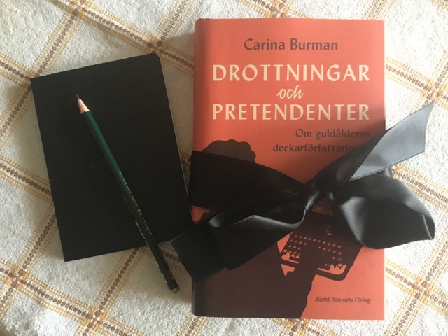 Det kom bokpost från Bonniers, med stor svart rosett och anteckningsbok. Det var alltså Drottningar och pretendenter – Om guldålderns deckarförfattarinnor av Carina Burman som brevbäraren kom med. Den ska bli spännande att läsa.
